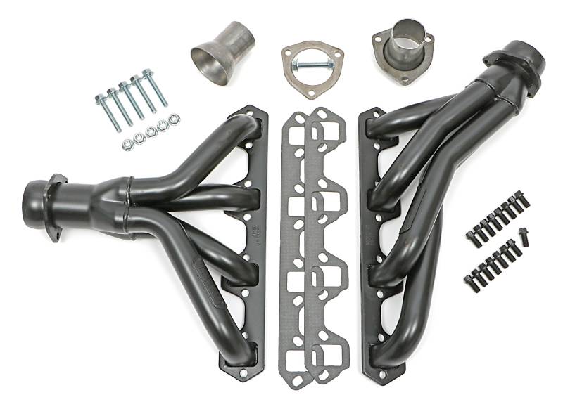 Handcrafted, Mild Steel Construction. The Mid-Length Tube Header Design Provides Significantly More Low and Mid-range Power than Cast Manifolds, and Provide Better Ground Clearance And Component Compatibility Than Long Tube Headers. Ball & Socket Collector Design requires No Gasket, and Allows For More Exhaust System Misalignment than Old School, Gasket-Style Header Collectors Includes All The Necessary Mounting Hardware, Gaskets and Reducers (exhaust adapters) Limted Lifetime Warranty On Construction, Five Year Warranty on Factory-Applied Header Coating!Details