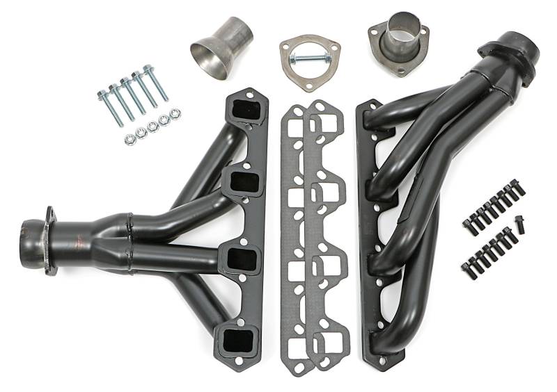 Handcrafted, Mild Steel Construction. The Mid-Length Tube Header Design Provides Significantly More Low and Mid-range Power than Cast Manifolds, and Provide Better Ground Clearance And Component Compatibility Than Long Tube Headers. Ball & Socket Collector Design requires No Gasket, and Allows For More Exhaust System Misalignment than Old School, Gasket-Style Header Collectors Includes All The Necessary Mounting Hardware, Gaskets and Reducers (exhaust adapters) Limted Lifetime Warranty On Construction, Five Year Warranty on Factory-Applied Header Coating!Details