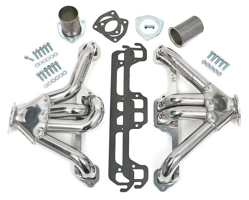 The Lowest Profile Header On The Market The Flat, Clamshell Style Collector Has an Extremely Low Profile So they'll Fit in Nearly Any Street Rod or Custom Build With Little Clearance. The High Volume Flat Collector Offers Improved Exhaust Flow For Far Superior Performance Over Classic Block Hugger Models. Includes Classic, 3-Bolt Gasket-Style Header Collectors, Mounting Hardware, Gaskets and Reducers (exhaust adapters) Limted Lifetime Warranty On Construction, Five Year Warranty on Factory-Applied Header Coating!Details