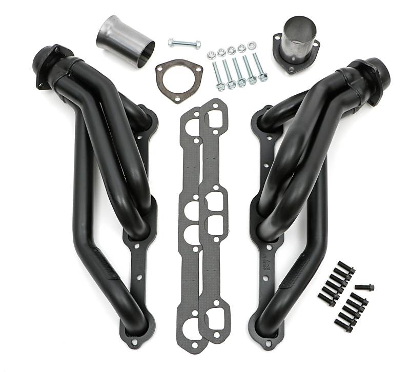 These uncoated, MID-LENGTH TUBE headers are designed specifically for use on on a Small Block Chevy 283-400 (Gen 1) fitted with D-PORT shaped heads (GM's ZZ heads have D-shaped ports) into 1982-2004 Chevy S10/Blazer, GMC S15/Jimmy 2WD trucks. Fits both manual and automatic transmission trucks. The smooth 1-1/2 in. tube design provides ample exhaust flow to let your transplanted 283-400 SB Chevy engine with D-Port Heads breathe easy, and produce additional horsepower and torque over factory manifolds.