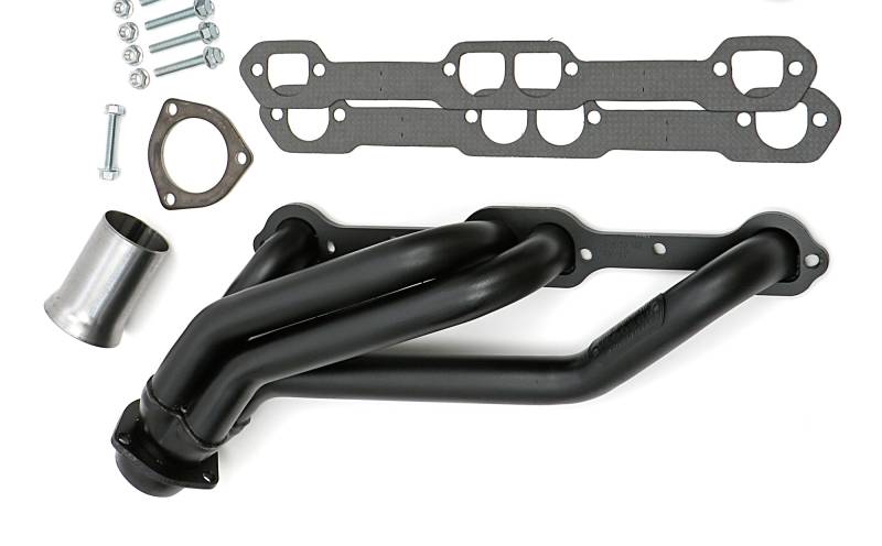 Handcrafted, Mild Steel Construction. The Mid-Length Tube Header Design Provides Significantly More Low and Mid-range Power than Cast Manifolds, and Provide Better Ground Clearance And Component Compatibility Than Long Tube Headers. Ball & Socket Collector Design requires No Gasket, and Allows For More Exhaust System Misalignment than Old School, Gasket-Style Header Collectors Includes All The Necessary Mounting Hardware, Gaskets and Reducers (exhaust adapters) Limted Lifetime Warranty On Construction, Five Year Warranty on Factory-Applied Header Coating!Details