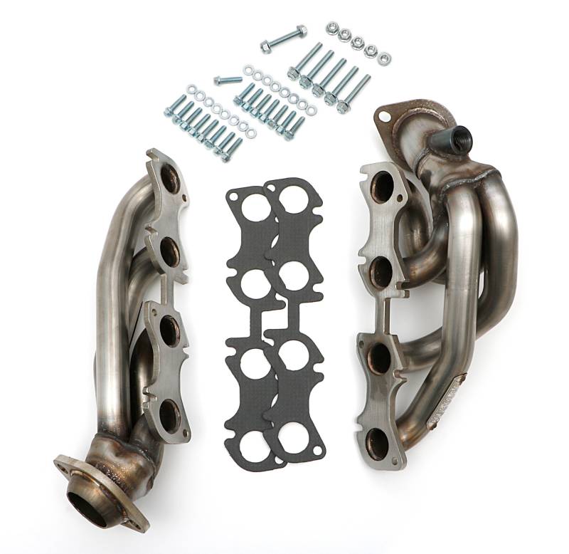 Stainless 50-State Headers For 97-03 Ford F150-F250 Trucks, SUVs 5.4L (2V) 100% Premium T304 Stainless Steel Flange and Tube Construction. T304 Stainless Material Is more Durable, Heat Resistant and Corrosion Resistant Than The 409 Stainless Steel Typically Used To Manufacture Exhaust Products. Ball & Socket Collector Design requires No Gasket, and Allows For More Exhaust System Misalignment than Old School, Gasket-Style Header Collectors Includes All The Necessary Mounting Hardware, Gaskets and Reducers (exhaust adapters) Limted Lifetime Warranty On Construction, Five Year Warranty on Factory-Applied Header Coating!