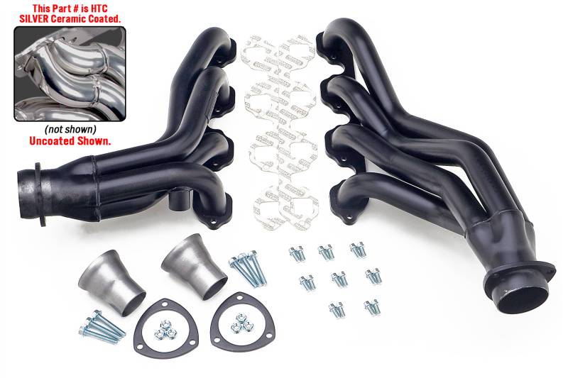 Specially Designed To Provide Additional Clearance For Larger, Close-Ratio (Quick Ratio) Steering Boxes The Mild Steel, Mid-Length Tube Header Design Provides Significantly More Low and Mid-range Power than Cast Manifolds, and Provide Better Ground Clearance And Component Compatibility Than Long Tube Headers. Ball & Socket Collector Design requires No Gasket, and Allows For More Exhaust System Misalignment than Old School, Gasket-Style Header Collectors Includes All The Necessary Mounting Hardware, Gaskets and Reducers (exhaust adapters) Limted Lifetime Warranty On Construction, Five Year Warranty on Factory-Applied Header Coating!Details