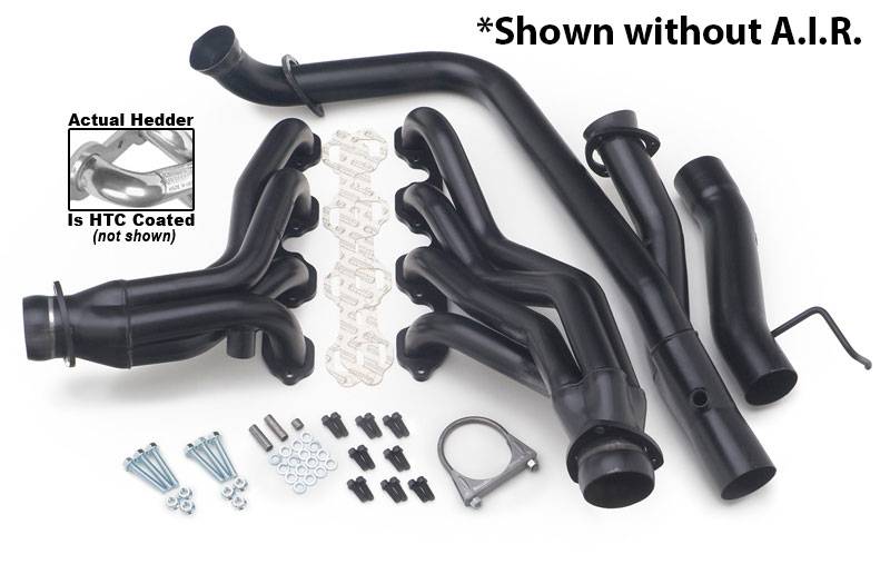 Silver 50-State Headers for '88-97 2WD/4WD F150-F350 Trucks w/7.5L (with A.I.R.) Specially Designed To Provide Additional Clearance For Larger, Close-Ratio (Quick Ratio) Steering Boxes The Mild Steel, Mid-Length Tube Header Design Provides Significantly More Low and Mid-range Power than Cast Manifolds, and Provide Better Ground Clearance And Component Compatibility Than Long Tube Headers. Ball & Socket Collector Design requires No Gasket, and Allows For More Exhaust System Misalignment than Old School, Gasket-Style Header Collectors Includes All The Necessary Mounting Hardware, Gaskets and Reducers (exhaust adapters) Limted Lifetime Warranty On Construction, Five Year Warranty on Factory-Applied Header Coating!