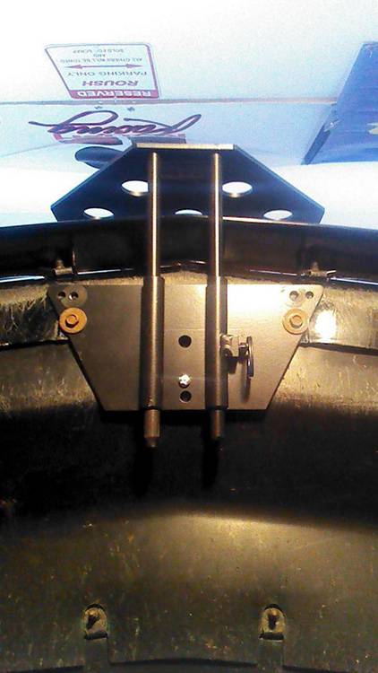 For 2005-2009 Ford Roush Mustang This bracket fits the 2005-2009 Ford Roush Mustang. Constructed of 5052 and 6061 aluminum, welded and anodized black, this bracket is built to last. All parts required for installation included, however, tools are required. Requires 1 hole to be drilled on the underside of the vehicle. This hole is not visible and does not detract from the look of the vehicle. Made in USA. Made of lightweight aluminum 2-piece system consisting of a front plate and a base plate Removal of the front plate requires only the pull of a spring loaded pull pin Made to be used with our GoPro camera mount Remaining base plate is virtually undetectable when front plate is removed