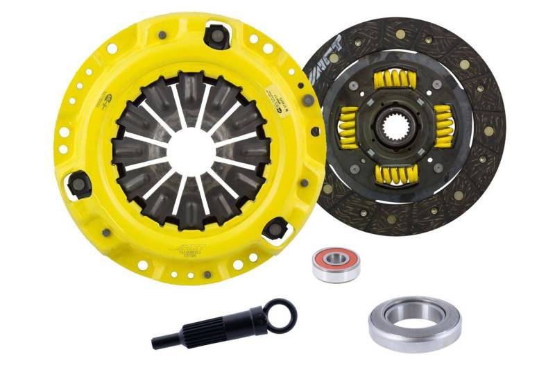 ACT Extreme Performance Street Sprung Clutch Kit TK1-XTSS kit features an Xtreme pressure plate for the most demanding driver. ACT Xtreme pressure plates use exclusive diaphragm design to increase clamp load, reduce deflection and maximize clutch life. All diaphragms endure a four-stage, heat-treating process for unparalleled performance. ACT pressure plates have precision cover stampings to provide rigidity and consistency. ACT's Performance street discs are the most popular disc purchased. They feature premium organic materials with high copper content for better heat transfer and steel-backed lining for greater burst strength and durability. These discs have reduced marcel for faster shift action to complement ACT pressure plates. Quiet operation with increased strength and reliability. "Excellence in Performance", backed by the best one-year warranty in the industry!