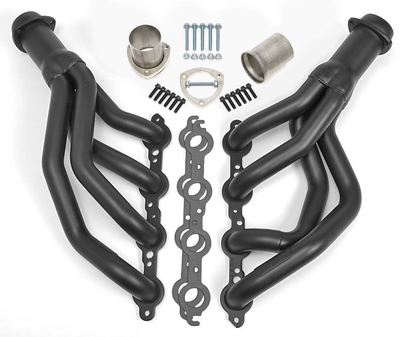 Black Stainless LS Swap Headers For 67-69 Camaro/FB, 68-74 Nova BLACK-MAXX™ Hedman Hedders has been manufacturing quality headers in the USA since 1954, and they've been manufacturing long and mid-length tube headers for GM F-Body and Nova models for decades, so designing a good fitting, great performing set of headers for the popular LS engine swap. Each set uses smooth flowing, CNC mandrel bent tubes, that are hand-welded to ensure each pair is identical to the next. The stout 3/8" header flanges ensure a great seal that will resist warping, and Hedman's unique, gasketless ball and socket collector design allows your Camaro, Firebird, Nova or Ventura's exhaust system to bolt up, even if it is not perfectly aligned with the header collectors. Hedman is so confident in the quality of its headers that these headers are factory backed by a Limited Lifetime Warranty. Specifically Designed to Install LS Engine Into 1st Gen F-Body and 68-74 X-Body Cars 100% T304 Stainless Steel Construction Is More Durable, Heat Resistant and Corrosion Resistant Than The 409 Stainless Steel Typically Used To Manufacture Exhaust Products. Ball & Socket Collector Design requires No Gasket, and Allows For More Exhaust System Misalignment than Old School, Gasket-Style Header Collectors Includes All The Necessary Mounting Hardware, Gaskets and Reducers (exhaust adapters) Limted Lifetime Warranty On Construction, Five Year Warranty on Factory-Applied Header Coating!
