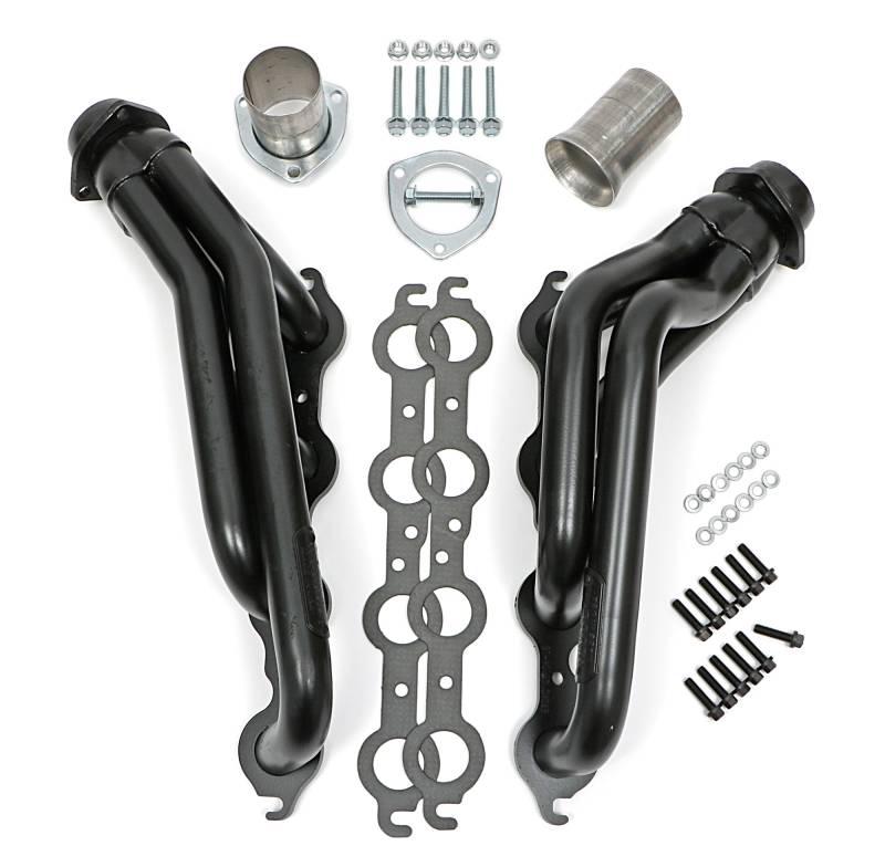 Mid-Length LS Engine Swap Headers For 2WD S10/S15 Trucks Handcrafted, Under-Chassis Exit Construction. The Mid-Length Tube Header Design Provides Significantly More Low and Mid-range Power than Cast Manifolds, and Provide Better Ground Clearance And Component Compatibility Than Long Tube Headers. Ball & Socket Collector Design requires No Gasket, and Allows For More Exhaust System Misalignment than Old School, Gasket-Style Header Collectors Includes All The Necessary Mounting Hardware, Gaskets and Reducers (exhaust adapters) Limted Lifetime Warranty On Construction, Five Year Warranty on Factory-Applied Header Coating!