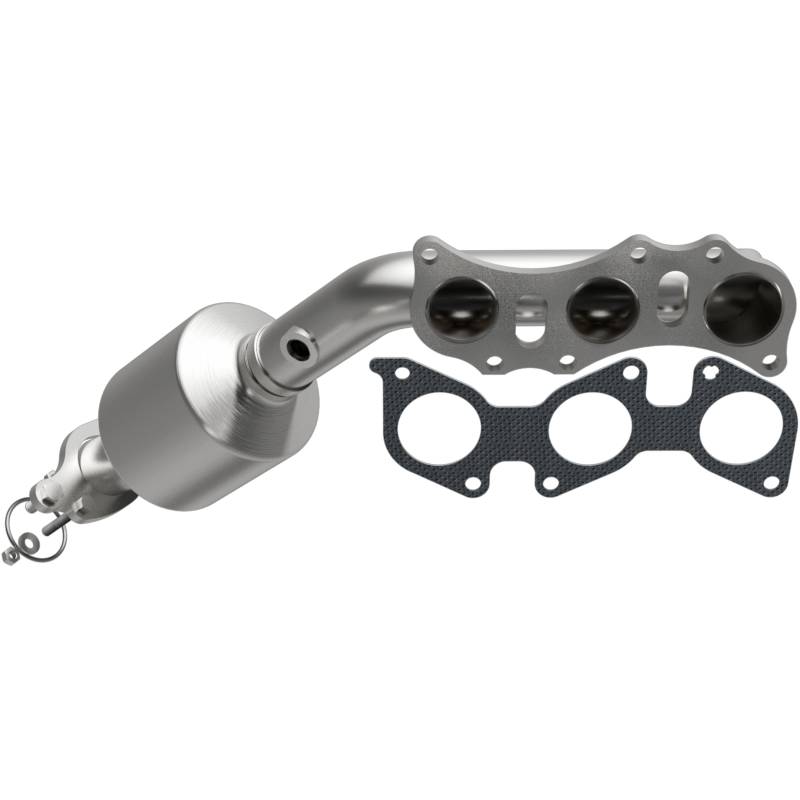 California CARB Manifold Catalytic Converter Keep the check engine light off with MagnaFlow California Grade CARB Compliant Direct-Fit Manifold Catalytic Converter 5481341. With features including free-flowing mandrel-bent tubing and highly corrosion resistant stainless steel construction, easily install this converter yourself using the proper tools, no cutting or welding required. MagnaFlow's state-of-the-art metrology department uses the latest 3D scanning systems during research and development, so you can be confident that your new part will fit and function like the original equipment. By replicating the OE design, the single laser fusion weld greatly reduces the possibility of a leak, and our compact, low-mass design also allows for greater thermal efficiency. MagnaFlow 5481341 includes (2) Nuts, (3) Bolts, (1) Crush Ring Gasket, (2) Flat Washers, (1) Flange Gasket and interchanges with OE parts 17150-0P010, 17150-0P020, 17150-0P070, 17150-0P100, 17150-0P140, 17150-0P260, 17150-31010, 17150-31011, 17150-31070, 17150-31240, 17150-31250, 17150-31320. This replacement part is designed to meet or exceed California Air Resource Board requirements, and has undergone additional testing to comply with CARB guidelines to allow for legal use in California and CARB restricted states, for the listed vehicles. Expertly crafted to replicate OEM-like flow dynamics, maintaining factory performance and fuel efficiency
