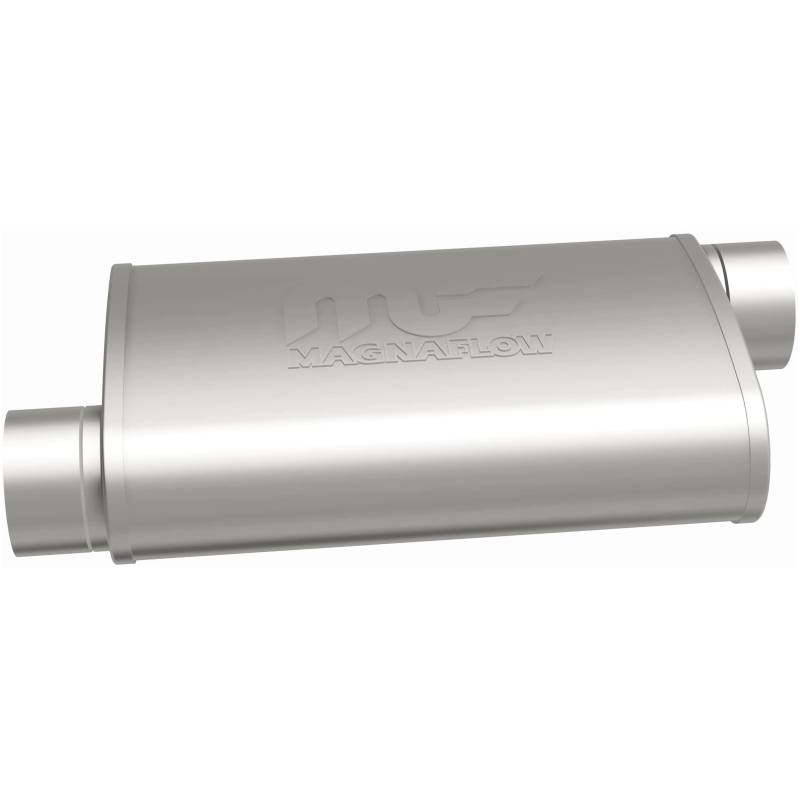 Straight-Through Performance Muffler; 3in. Offset/Offset; 4x14x9 Body The MagnaFlow 4 x 9in. Oval Straight-Through Performance Exhaust Muffler 11239 is engineered to enhance your ride with a healthy helping of our signature exhaust sound and dyno-proven performance thanks to its free-flowing straight-through perforated stainless steel core wrapped in stainless steel mesh and acoustic fiber fill. The reversible, universal 3/3in. diameter inlet/outlet Straight-Through layout allows you to install it in whatever orientation and configuration you see fit. However, professional installation is highly recommended. Muffler 11239s weight-optimized 4x9x14in. oval-shaped body features a satin finish that elevates the overall aesthetics of your current exhaust setup. 11239 is made of durable, corrosion resistant stainless steel and produced using cutting-edge CNC precision robotic manufacturing techniques, all backed by MagnaFlow's limited lifetime construction warranty. Delivers a Smooth, Deep Tone Mufflers are Bi-Directional 100% Stainless Steel