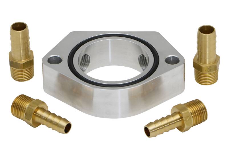 Trans-Dapt CNC machines these risers from durable T6061 aluminum and clear anodizes them for longlasting looks. A captured o-ring is used to ensure a leakproof installation, and a recessed thermostat groove to allow the thermostat to sit flush with the sealing flange.