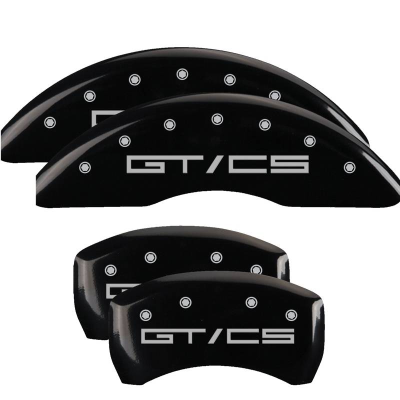 Set Of 4 Caliper Covers, Engraved Front: Gt/Cs - Engraved Rear: Gt/Cs, Black Pow MGP Caliper Covers are a car accessory designed and manufactured specifically for your 2015-2023 Ford Mustang to cover up and hide those ugly brake calipers. These aluminum caliper covers are finished with a high-quality powder coat. MGP caliper covers will enhance your wheel appearance and curbside appeal with either black, yellow or red caliper covers. MGP Brake Caliper Covers are tested for safety fitment and are licensed by major manufacturers.