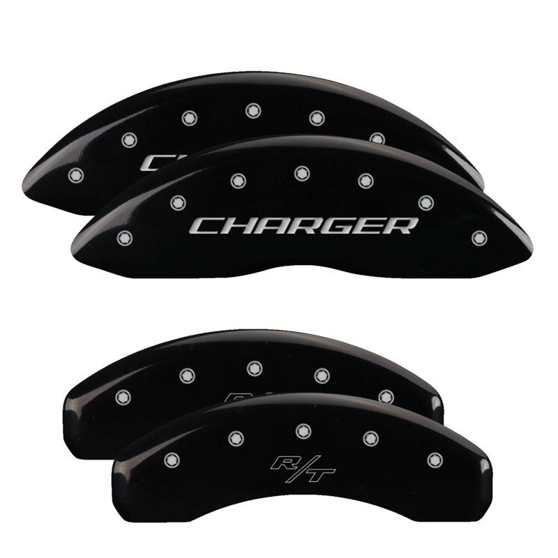 Set of 4 caliper covers, Engraved Front: Charger - Engraved Rear: RT, Black powd MGP Caliper Covers are a car accessory designed and manufactured specifically for your 2006-2020 Dodge Charger to cover up and hide those ugly brake calipers. These aluminum caliper covers are finished with a high-quality powder coat. MGP caliper covers will enhance your wheel appearance and curbside appeal with either black, yellow or red caliper covers. MGP Brake Caliper Covers are tested for safety fitment and are licensed by major manufacturers.