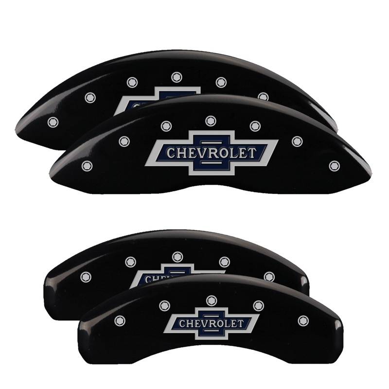MGP Caliper Covers 14252SBANBK Front/Rear 4pc Black w/Silver 100 Ann. for Chevy
