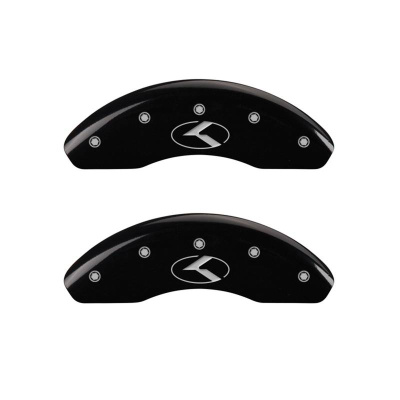 Front Set 2 Caliper Covers, Engraved Front And Rear: Circle K/Kia, Black Powder MGP Caliper Covers are a car accessory designed and manufactured specifically for your 2018-2018 Kia Rio to cover up and hide those ugly brake calipers. These aluminum caliper covers are finished with a high-quality powder coat. MGP caliper covers will enhance your wheel appearance and curbside appeal with either black, yellow or red caliper covers. MGP Brake Caliper Covers are tested for safety fitment and are licensed by major manufacturers.