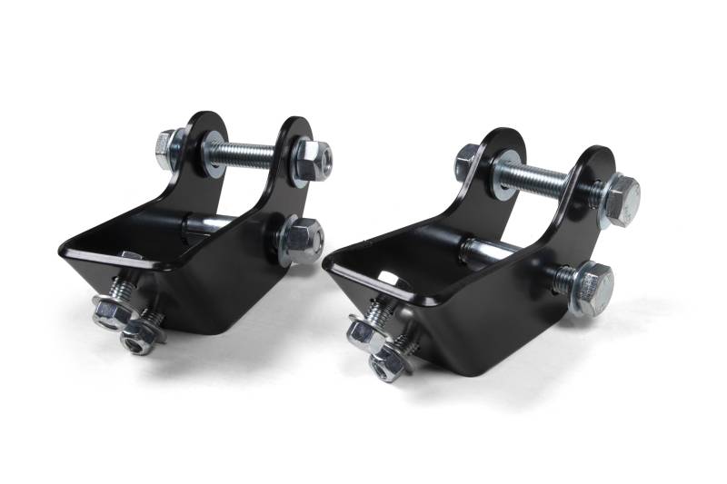 Rear Shock Extension Brackets Extend the shock mounts on your Jeep Gladiator JT with these JKS Rear Shock Extension Brackets. The heavy duty design extends the factory shock mounts 2", allowing use of factory shocks with up to 2.5" of lift. Durable powder coated finish provides excellent corrosion resistance. Easy, bolt-on installation requires no modifications. Retains use of OE shocks at 0-2.5" of lift 3/16" steel design provides great durability Bolt-on for easy install