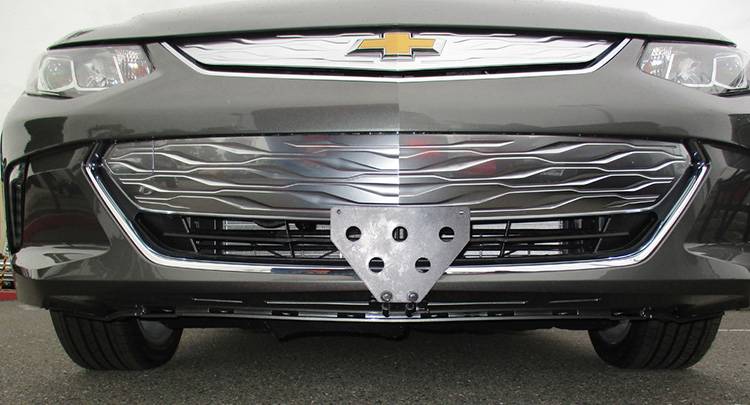For 2016-2019 Chevy Volt This bracket fits the 2016-2019 Chevrolet Volt. Constructed of 5052 and 6061 aluminum, welded and anodized black, this bracket is built to last. All parts required for installation included, however, tools are required. Requires 2 holes to be drilled on the underside of the vehicle. These holes are not visible and does not detract from the look of the vehicle. Made in USA. Made of lightweight aluminum 2-piece system consisting of a front plate and a base plate Removal of the front plate requires only the pull of a spring loaded pull pin Made to be used with our GoPro camera mount Remaining base plate is virtually undetectable when front plate is removed