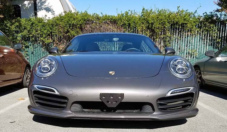 For 2013-2015 Porsche 911 Turbo This bracket fits the 2013-2015 Porsche 911 Turbo. Constructed of 5052 and 6061 aluminum, welded and anodized black, this bracket is built to last. All parts required for installation included, however, tools are required. Requires one hole to be drilled for installation. This hole is not visible and will not detract from the look of the vehicle.Made in USA. Made of lightweight aluminum 2-piece system consisting of a front plate and a base plate Removal of the front plate requires only the pull of a spring loaded pull pin Made to be used with our GoPro camera mount Remaining base plate is virtually undetectable when front plate is removed
