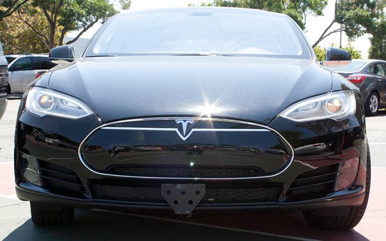 For 2012-2015 Tesla Model S This bracket fits the 2012-2015 Tesla Model S. Constructed of 5052 and 6061 aluminum, welded and anodized black, this bracket is built to last. All parts required for installation included, however, tools are required. Requires 3 holes to be drilled underneath vehicle on the underside of the spoiler. These holes are not visible and will not detract from the look of the vehicle. Made in USA. Made of lightweight aluminum 2-piece system consisting of a front plate and a base plate Removal of the front plate requires only the pull of a spring loaded pull pin Made to be used with our GoPro camera mount Remaining base plate is virtually undetectable when front plate is removed