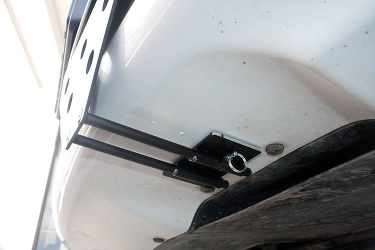 For 2012-2016 Jeep Grand Cherokee SRT This bracket fits the 2012-2016 Jeep Grand Cherokee SRT. Constructed of 5052 and 6061 aluminum, welded and anodized black, this bracket is built to last. All parts required for installation included, however, tools are required. Requires 4 holes to be drilled underneath vehicle on the underside of the spoiler. These holes are not visible and will not detract from the look of the vehicle.Made in USA. Made of lightweight aluminum 2-piece system consisting of a front plate and a base plate Removal of the front plate requires only the pull of a spring loaded pull pin Made to be used with our GoPro camera mount Remaining base plate is virtually undetectable when front plate is removed