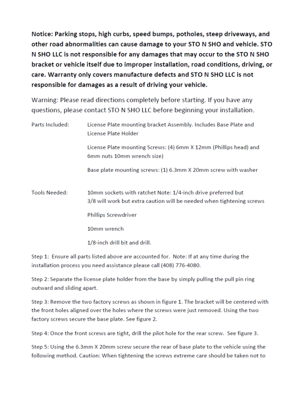 STO N SHO SNS70 Quick Release License Plate Bracket 15-17 Lincoln MKC