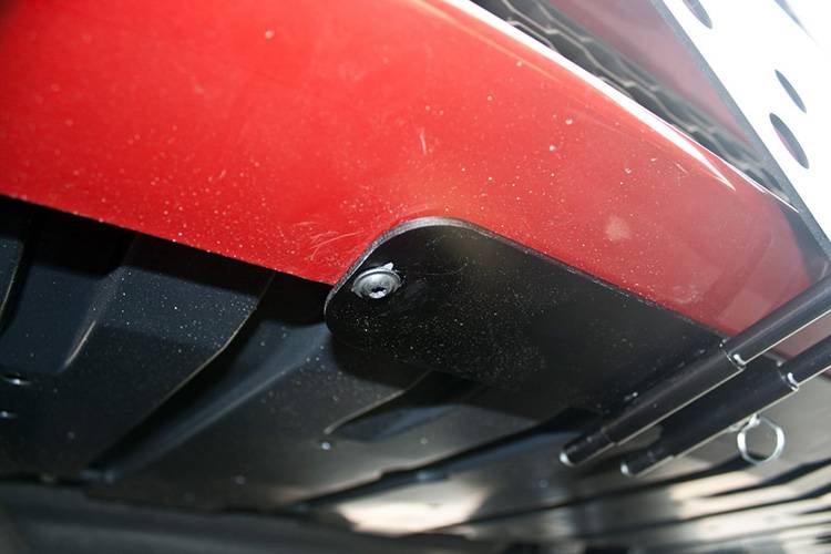 For 2017-2018 XE R Sport This bracket fits the 2017-2018 Jaguar XE R Sport. Constructed of 5052 and 6061 aluminum, welded and anodized black, this bracket is built to last. All parts required for installation included, however, tools are required. Requires no holes to be drilled on the underside of the vehicle. Made in USA. Made of lightweight aluminum 2-piece system consisting of a front plate and a base plate Removal of the front plate requires only the pull of a spring loaded pull pin Made to be used with our GoPro camera mount Remaining base plate is virtually undetectable when front plate is removed