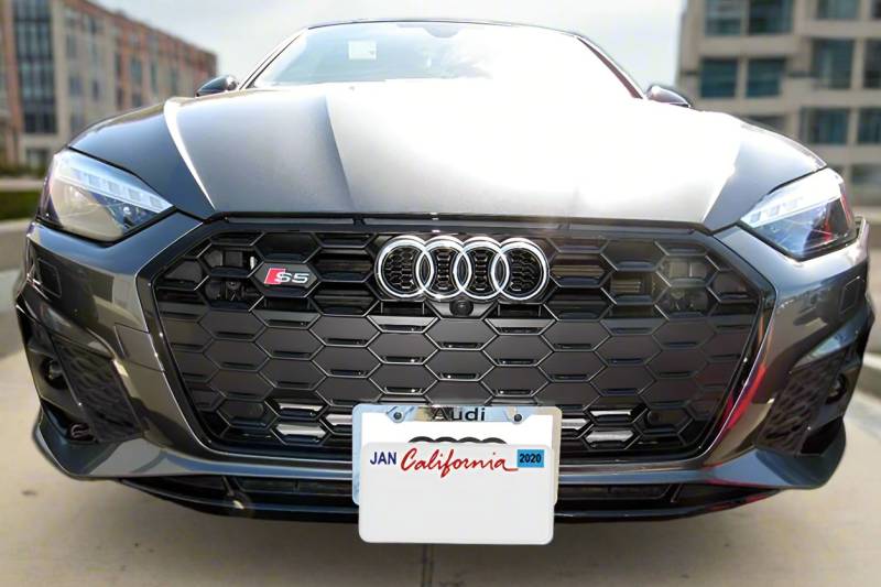 For 2020 Audi S5 and A5 S-line This bracket fits the 2020 S5 and A5 S-line. You want to avoid drilling holes in your bumper? Want to avoid expensive fines and tickets for not having a front license plate? Easily remove your front plate with only the tug of a spring loaded pull pin, the remaining base plate is undetectable Capture all the action with our GoPro compatible camera mount Save your bumper- no holes are required in the FRONT of your bumper