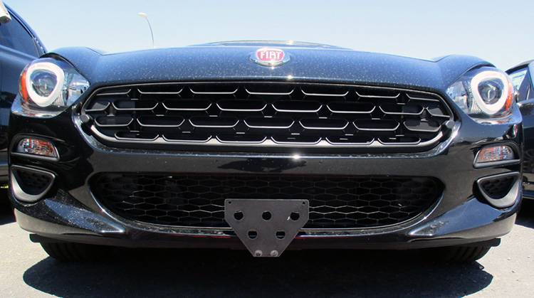 For 2017-2019 Fiat 124 Spider This bracket fits the 2017-2019 Fiat 124 Spider. Constructed of 5052 and 6061 aluminum, welded and anodized black, this bracket is built to last. All parts required for installation included, however, tools are required. Requires 2 holes to be drilled on the underside of the vehicle. These holes are not visible and do not detract from the look of the vehicle. Made in USA. Made of lightweight aluminum 2-piece system consisting of a front plate and a base plate Removal of the front plate requires only the pull of a spring loaded pull pin Made to be used with our GoPro camera mount Remaining base plate is virtually undetectable when front plate is removed