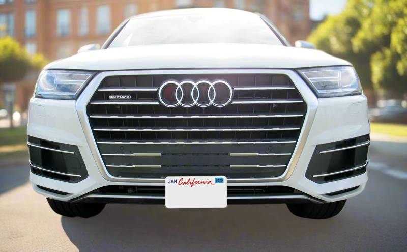 STO N SHO For 2017-2022 Audi Q7 This bracket fits the 2017-2022 Audi Q7. You want to avoid drilling holes in your bumper? Want to avoid expensive fines and tickets for not having a front license plate? Easily remove your front plate with only the tug of a spring loaded pull pin, the remaining base plate is undetectable Capture all the action with our GoPro compatible camera mount Save your bumper- no holes are required in the FRONT of your bumper