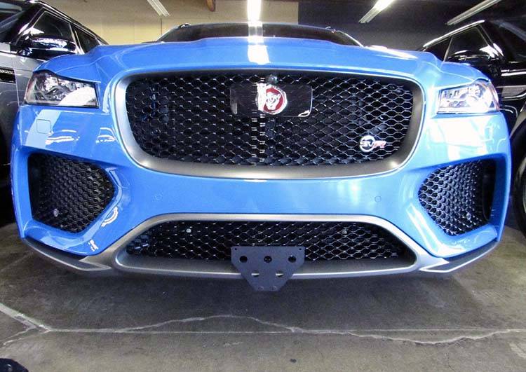 For 2020 Jaguar F-Pace SVR This bracket fits the 2020 Jaguar F-Pace SVR. Constructed of 5052 and 6061 aluminum, welded and anodized black, this bracket is built to last. All parts required for installation included, however, tools are required. Requires 2 holes to be drilled on the underside of the vehicle. These holes are not visible and do not detract from the look of the vehicle. Made in USA. Made of lightweight aluminum 2-piece system consisting of a front plate and a base plate Removal of the front plate requires only the pull of a spring loaded pull pin Made to be used with our GoPro camera mount Remaining base plate is virtually undetectable when front plate is removed