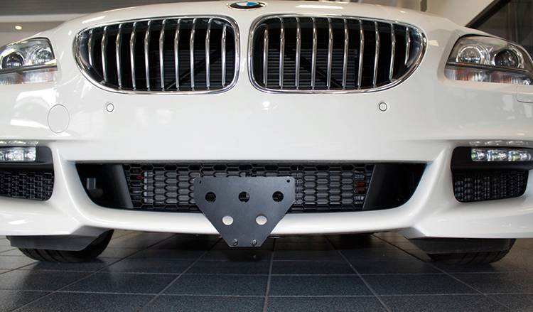 This bracket fits the 2012-2017 BMW 650i M Sport, 640i convertible without adaptive cruise control. Constructed of 5052 and 6061 aluminum, welded and anodized black, this bracket is built to last. All parts required for installation included, however, tools are required. Requires 4 holes to be drilled on the underside of the vehicle. These holes are not visible and do not detract from the look of the vehicle. Made in USA.