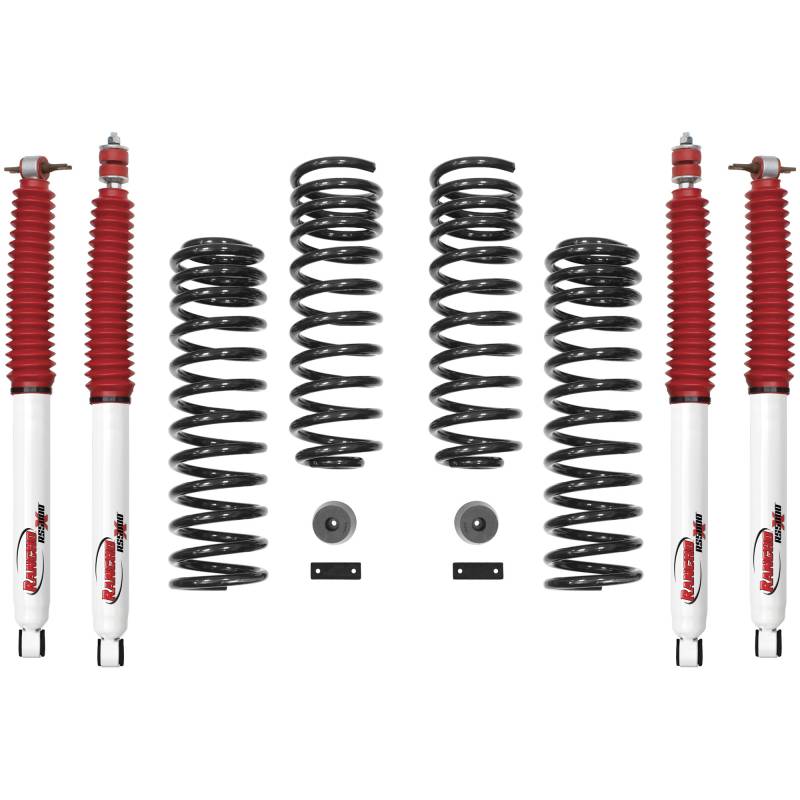 Suspension Lift Kit Los Sistemas de Suspensión RANCHO® proporcionan un rendimiento robusto para el trabajo o el juego en cualquier entorno dentro o fuera de carretera. Los sistemas de suspensión Rancho® son totalmente compatibles con otras tecnologías de Rancho, incluyendo amortiguadores premium RS9000XL, controlador de sintonía inalámbrico MyRide , amortiguadores de la serie RS5000® y amortiguadores de la bobina de la serie Pro. Los sistemas de suspensión Rancho® son compatibles con hasta 37 pulg. Incluye el legendario brazo pitman forjado de la marca en las aplicaciones donde sea necesario, el nuevo soporte de reubicación de la barra de la pista delantera cuando sea necesario y los enlaces delanteros de tipo tubular pesados ??cuando sea necesario. La mayoría de los sistemas funcionan con ruedas de stock. Diseñados para mantener la integridad y la geometría de la dirección, los ingenieros de Rancho también mantuvieron la posición OE de la cremallera y el piñón, manteniendo los ángulos del eje de transmisión adecuados para minimizar las vibraciones. Rancho incluye bloques de resorte de hoja trasera y un soporte de reubicación de barra de pista delantera donde sea necesario. El sistema contiene todo el hardware de alineación necesario. Los Sistemas de Suspensión Rancho® son conocidos por sus instrucciones detalladas en la industria todoterreno que incluyen información altamente detallada sobre la instalación del sistema. Los estabilizadores de dirección Rancho® están cubiertos por nuestra garantía limitada de por vida que garantiza su inversión. COMPATIBILITY -- Designed for 2-door Jeep Wrangler JK BUILT FOR THE TRAIL -- Designed to fit up to 33-in. tires, get 2-in. of additional ground clearance needed for trail riding or on-road driving (can accommodate 35-in. tires with trimming; bumpers, sliders, winches, etc. affect lift height) COMPLETE SOLUTION -- Kit includes four Rancho RS5000®X shocks, front and rear progressive rate coil springs, front bump stops, rear brake line relocation brackets and mounting hardware ENHANCED CONTROL -- Rancho RS5000®X shocks provide additional control, reduces body roll and prevents rod overextension inside the shock SUPERIOR PERFORMANCE -- Front and rear progressive rate coil springs, specifically tuned to provide superior on-road comfort and off-road performance