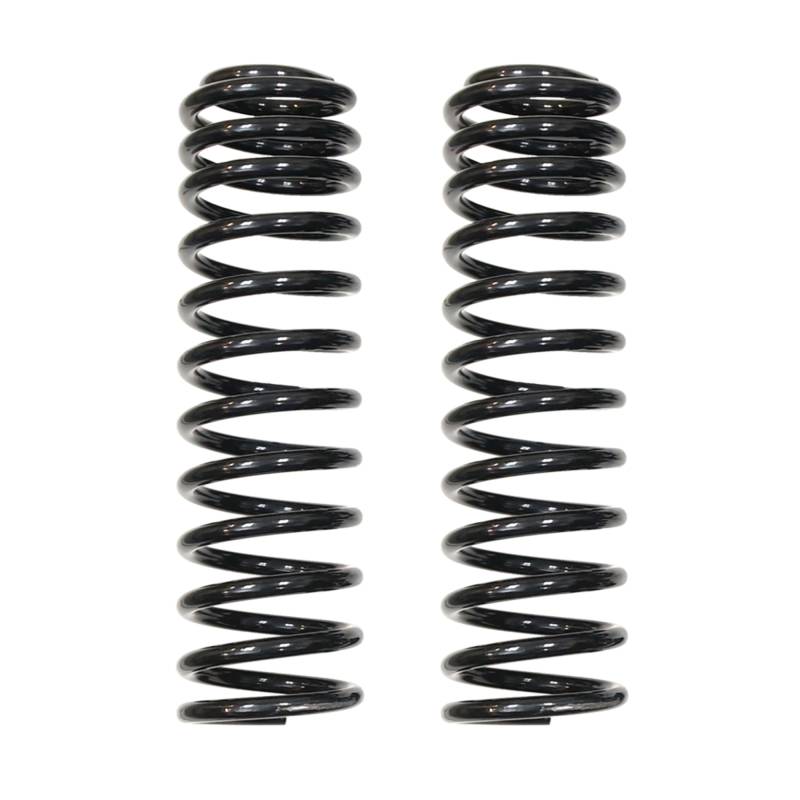 Coil Spring Set Specifically tuned to provide on-road comfort and off-road performance, Rancho®progressive rate front coil springs ensure that your 2 or 4-door Jeep® Wrangler JK and JKU maintains a level stance and ride – even while under heavy load or towing. These Rancho front coil springs provide 2-in. of lift height to allow the use of larger wheel/tire combinations without body modifications or fender trimming. COMPATIBILITY -- Designed for Jeep Wrangler JK/JKU IMPROVES PERFORMANCE -- Progressive rate springs are specifically tuned to deliver superior on-road comfort and off-road performance FITS LARGER TIRES -- Provides 2-in. of lift to accommodate larger wheel/tires without body or fender modifications (aftermarket bumpers, sliders, winches affect lift height) EASY TO INSTALL -- Kit includes two front coil springs that install easily LEVELS VEHICLE -- Maintains level stance and ride while under heavy load or towing