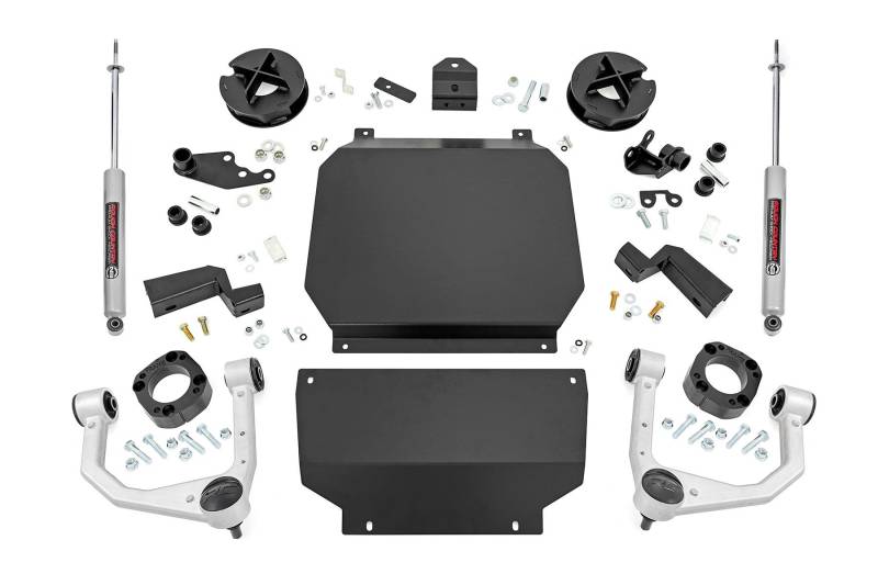 Transform Your Truck. Make a bigger, bolder statement with Rough Country's 3.5 -Inch Lift Kit for your Tundra 4WD. Our 3.5-inch kit gives your new Tundra impressive good looks while overcoming the age-old problem of the nose-down look from the factory. And since this kit allows you to run larger-sized tires, you'll be able to conquer even more terrain! So whether you're looking to add some extra clearance for off-road adventures or want a tougher, more aggressive look for your Tundra, Rough Country has you covered.\ Innovative Design. Rough Country's 3.5-inch Bolt-On Kit features a set of high-quality, Forged Aluminum Upper Control Arms designed to make alignment adjustments easier and durable rubber bushings. These arms are designed to promote a factory-like geometry by keeping the ball joint at optimum angles after lifting. This design allows for an improved, greater range of motion from the ball joint, with less stress, wear and tear. Each unit is shipped complete ensuring that all components needed for installation are included.\ Installation. Featuring a 100% bolt-on installation process, installation couldn't be easier. With an estimated timeframe of 4-6 hours this full kit can be installed at home using standard tools and can be completed efficiently and quickly!\ Lifetime Replacement Warranty. Rough Country's 3.5" Lift Kit is backed with a lifetime replacement warranty towards manufacturer defects. As such, the product is protected from structural and workmanship damage after the date of purchase. With our industry-leading warranty give yourself peace of mind when using Rough Country's Suspension products!