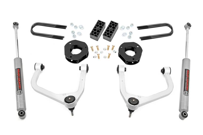 Explore New Heights: GM's fourth-generation Silverado 1500 features an impressive all-new design that's built from the ground up, with aggressive angles and head-turning stylings that fit in beautifully when transformed with Rough Country's 3.5-inch Suspension Lift.Innovative Design and Construction: When changing a vehicle's suspension, the key to preserving ride quality is keeping the geometry of all suspension components as close to their factory angles as possible. Rough Country's 3.5in lift features a set of forged aluminum upper control arms to provide the correct suspension geometry in our most durable control arm to date! This perfect-height lift is a great choice for anyone who wants more than a simple level but doesn't quite want the full height of a 6-inch option. This kit lifts and levels the front of the vehicle with the rear, offering enough increased ground clearance to run up to 295/55R20 tires with an improved, aggressive look. We didn't want to limit you to one standard kit. Rough Country's 3.5-inch kit is configurable with all the shock options that we offer. This allows you to choose which shock series you want! Ranging from our nitrogen-charged N3 shocks to our Vertex reservoir shocks the power to choose is in your hands.Installation: Requiring the use of a strut compressor to install, an estimated timeframe of 5-6 hours is recommended to complete this full installation. This full kit can be installed at home and can be completed efficiently and quickly!Limited Lifetime Replacement Warranty: Rough Country's 3.5" Suspension Lift Kit is backed with a limited lifetime replacement warranty towards manufacturer defects. As such, the product is protected from structural and workmanship damage after the date of purchase. With our industry-leading warranty give yourself peace of mind when using Rough Country's Suspension products!