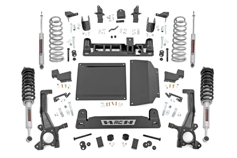 Superior Lift Solution. Looking to add some serious attitude to your third-generation Toyota Tundra? Rough Country's 6-Inch Lift Kit is just what you need. This lift kit gives your Tundra a meaner, lifted, and level stance while providing a smooth ride for unmatched highway and trail performance. It also adds room for larger wheels and tires, so you can make your truck stand out from the crowd. With excellent ride quality and handling characteristics on the road, this lift kit is the perfect way to take your Tundra to the next level.\ High-Quality Construction. Rough Country's 6-Inch Lift Kit for the 2022 Toyota Tundra makes it easy to gain that much-needed ground clearance and run up to a 37" tire for that aggressive look you want! Designed to maintain factory track width and alignment specs, this kit boasts premium components, giving you a higher-quality lift on your Tundra. The high-quality components and a high-clearance design provide the strength, stability, and up-travel you need to conquer almost any terrain.\ Installation and Warranty. Our 6-Inch Lift Kit includes all the hardware you need for installation, including front struts, rear coil springs, and bump stops. Our heavy-duty parts provide the strength, stability, and up-travel you need to conquer almost any terrain. When you purchase a Rough Country product, you get more than a great product at an affordable price. You also get peace of mind knowing that your purchase comes with a limited lifetime replacement warranty for manufacturer defects. With Rough Country's industry-leading warranty, you can be sure that your Rough Country lift kit is protected from structural and workmanship damage after the date of purchase.