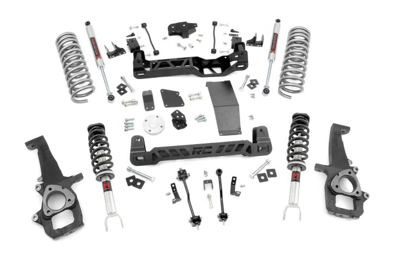 Transform your fourth-generation RAM 1500 with Rough Country's complete 6in Suspension Lift Kit. This all-inclusive system delivers an aggressive, commanding stance that perfectly complements your truck's rugged new design.Preserve Your Smooth Factory Ride: Experience the same comfortable and controlled driving feel you love. Our kit maintains a smooth factory-like ride quality so every journey, on-road or off, is just as comfortable as before.Boost Your Ground Clearance for Ultimate Off-Road Confidence: Gain plenty of added clearance to tackle the toughest trails and obstacles with ease. The 6-inch lift lets you run up to massive 37-inch tires for a bold look and enhanced off-road capability.Achieve a Balanced, Aggressive Stance: Level your RAM's front and rear for a sleek, aggressive profile that turns heads everywhere you go. The kit includes precision-engineered front and rear crossmembers, each laser-cut with the iconic RC logo for a fierce yet streamlined appearance.Optimized Ride Quality with Application-Specific Springs: Enjoy improved handling, ride comfort, and load support thanks to dual-rate rear coil springs (optional upgrade) tailored for your RAM. Whether cruising highways or conquering rocky terrain, this kit adapts seamlessly.Fully Configurable with Premium Shock Options: Customize your ride quality with shock absorbers that match your driving style, from nitrogen-charged N3 shocks for balanced performance to the premium Vertex reservoir shocks for the ultimate ride.Clean Installation with Long-Term Durability: All components are designed with drop brackets and proper geometry to keep your truck looking sharp and functioning flawlessly, no loose parts or unsightly hangers. Backed by Rough Country's Limited Lifetime Replacement Guarantee, this kit is built to last.Upgrade your RAM 1500 with Rough Country's 6in Suspension Lift Kit, dominate the trails, look the part, and drive like a champion every mile of the way.