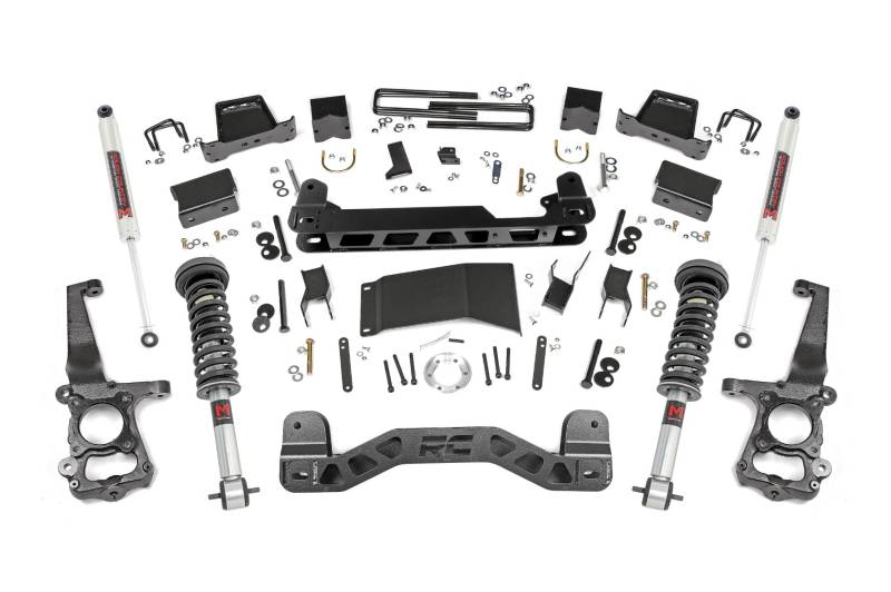 Transform Your F-150 with Aggressive Style and Trail-Ready Performance: Take your Ford F-150 to the next level, both in looks and capability, with Rough Country's 6-Inch Suspension Lift Kit. Engineered for serious off-road enthusiasts, this all-inclusive kit gives your truck a commanding stance and the clearance needed to conquer rugged terrain with confidence.Built for the Trail. Designed for the Road: Gain increased ground clearance and install up to 35-inch tires with proper spacing, without compromising ride quality. The heavy-duty lifted knuckles and precision-engineered strut spacers deliver reliable height and strength, while differential drop brackets, sway-bar drop brackets, brake line brackets, and a driveshaft spacer keep vital components at factory-like angles for a smooth, controlled ride.Unmatched Durability with Fabricated Components: Front and rear 1/4-inch plate steel crossmembers add aggressive style and rock-solid support, customized to fit the latest F-150 chassis. Rough Country's fabricated rear blocks are stronger than cast options and built to last, featuring specially designed anti-axle wrap geometry that maintains stock ride quality while eliminating common lift block issues.Clears Bigger Tires with Confidence: This lift provides the clearance to run 35-inch tires, giving your F-150 a bold new look and serious off-road potential.Fully Configurable with All Shock and Strut Options: Customize your ride with the suspension setup that fits your driving style. Choose from nitrogen-charged N3 shocks for balanced on- and off-road performance or upgrade to Rough Country's Vertex reservoir series for premium ride quality and maximum damping control.Peace of Mind Included: Rough Country backs this kit with a Limited Lifetime Replacement Guarantee, ensuring your suspension is ready for whatever comes next.