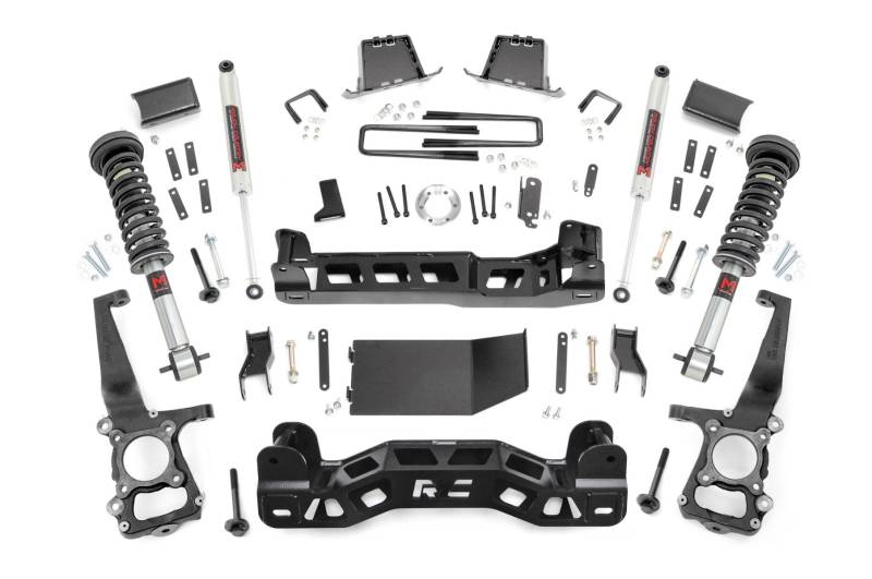 Commanding Lift, Premium Ride: Transform the look and capability of your 2014 Ford F-150 with Rough Country's 6-Inch Lift Kit. Engineered to deliver a bold, leveled stance, this kit not only increases ground clearance for rugged off-road performance but also makes room for larger tires and wheels. Whether you're cruising the highway or tackling backcountry trails, enjoy a smooth, confident ride with enhanced control and presence. Engineered for Strength and Stability: Built for serious performance, this kit features heavy-duty lifted knuckles, durable strut spacers, or your choice of lifted struts, all designed to maintain proper suspension geometry. Differential and sway-bar drop brackets, along with brake line extensions and a driveshaft spacer, ensure everything stays at factory-like angles. Massive 1/4-inch thick front and rear crossmembers offer uncompromised strength, laser-cut with the RC logo for a clean, aggressive look.Advanced Rear Block Design: Rough Country's 4-inch fabricated rear blocks are stronger and longer-lasting than traditional cast versions. Specially engineered anti-axle wrap blocks eliminate common lift-related issues while maintaining stock ride comfort. You get durability and drivability in one rugged package.Tailored Ride Performance: This kit includes Rough Country's premium N3 shocks-10-stage variable valving, nitrogen-charged for the perfect fusion of off-road performance and on-road comfort. Want more? It's fully configurable with Rough Country's full lineup of shocks and struts, including the high-performance Vertex reservoir upgrade.Limited Lifetime Replacement Warranty. Rough Country's 6" Lift Kit is backed with a limited lifetime replacement warranty for manufacturer defects. As such, the product is protected from structural and workmanship damage after the date of purchase. With our industry-leading warranty, give yourself peace of mind when using Rough Country's Suspension products!
