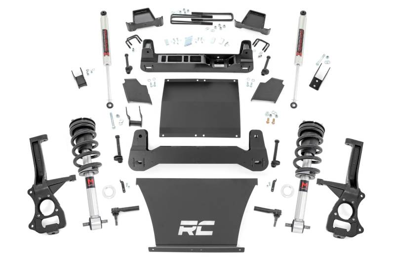 Explore New Heights: Chevy's fourth generation 1500 features an impressive all-new design that's built from the ground up, with aggressive angles and head-turning stylings that fit in beautifully when transformed with Rough Country's 6-inch Suspension Lift.Innovative Design and Construction: When changing a vehicle's suspension, the key to preserving ride quality is keeping the geometry of all suspension components as close to their factory angles as possible.This suspension kit combines the use of durable steel knuckles, differential brackets, and drop cross members to reduce cv angles and simulate factory angles all while achieving new heights. Featuring a set of upper strut spacers that offer uncompromised strength and rigidity, gaining lift height is no issue. Completing the rear of this suspension kit is a set of rear blocks, shocks, and u-bolts that allow you to retain factory-like geometry. This combined setup provides enough clearance to run 35" tires without additional modifications. We didn't want to limit you to one standard kit. Rough Country's 6-inch kit is configurable with all the shock options that we offer. This allows you to choose which shock series you want! Ranging from our nitrogen-charged N3 shocks to our Vertex reservoir shocks the power to choose is in your hands.Installation: With minor cutting and a strut compressor required to install, an estimated timeframe of 8-10 hours is recommended to complete this full installation. This full kit can be installed at home and can be completed efficiently and quickly!Limited Lifetime Replacement Warranty: Rough Country's 6" Suspension Lift Kit is backed with a limited lifetime replacement warranty towards manufacturer defects. As such, the product is protected from structural and workmanship damage after the date of purchase. With our industry-leading warranty give yourself peace of mind when using Rough Country's Suspension products!