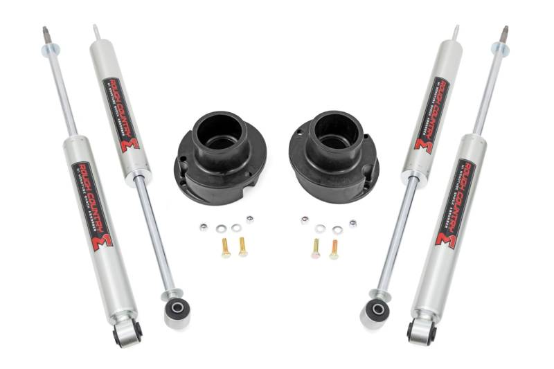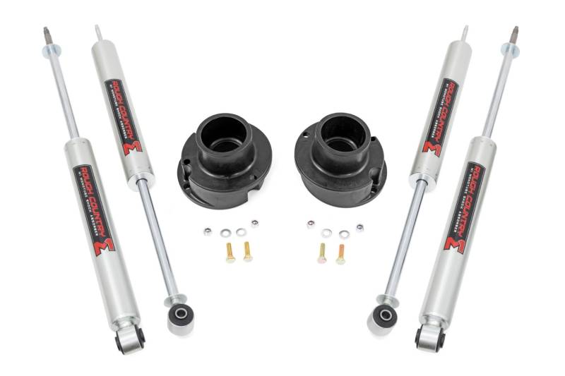 Lift, level, and smooth out your ride with Rough Country's new and improved 2.5-inch RAM 2500/3500 Leveling Kit. Engineered to fit RAM trucks equipped with front radius arm suspension setups, this easy-to-install kit gives a big boost at an unbelievable price!\ \ Rough Country's durable coil spring spacers have been expertly redesigned to match the factory geometry of your truck, including the angle of the coil mounts and position of the rubber isolator, which perfectly indexes both springs to eliminate any chance of coil bowing. This kit also includes a pair of front N3 Shock Absorbers for better ride quality both on and off-road. Rough Country's N3 shocks are nitrogen charged, featuring 10-Stage Velocity Sensitive Valving for a smooth ride no matter what the terrain.\ \ This kit also features a lightning fast, 100% bolt-on installation process that couldn't be easier or less invasive to your new vehicle. Includes Rough Country's Lifetime Replacement Warranty.
