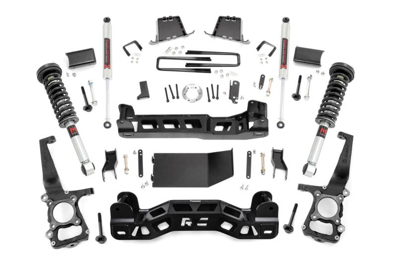 Commanding Lift, Premium Ride: Transform the look and capability of your 2011-2013 Ford F-150 with Rough Country's 6-Inch Lift Kit. Engineered to deliver a bold, leveled stance, this kit not only increases ground clearance for rugged off-road performance but also makes room for larger tires and wheels. Whether you're cruising the highway or tackling backcountry trails, enjoy a smooth, confident ride with enhanced control and presence. Engineered for Strength and Stability: Built for serious performance, this kit features heavy-duty lifted knuckles, durable strut spacers, or your choice of lifted struts, all designed to maintain proper suspension geometry. Differential and sway-bar drop brackets, along with brake line extensions and a driveshaft spacer, ensure everything stays at factory-like angles. Massive 1/4-inch thick front and rear crossmembers offer uncompromised strength, laser-cut with the RC logo for a clean, aggressive look.Advanced Rear Block Design: Rough Country's 4-inch fabricated rear blocks are stronger and longer-lasting than traditional cast versions. Specially engineered anti-axle wrap blocks eliminate common lift-related issues while maintaining stock ride comfort. You get durability and drivability in one rugged package.Tailored Ride Performance: This kit includes Rough Country's premium N3 shocks-10-stage variable valving, nitrogen-charged for the perfect fusion of off-road performance and on-road comfort. Want more? It's fully configurable with Rough Country's full lineup of shocks and struts, including the high-performance Vertex reservoir upgrade.Limited Lifetime Replacement Warranty. Rough Country's 6" Lift Kit is backed with a limited lifetime replacement warranty for manufacturer defects. As such, the product is protected from structural and workmanship damage after the date of purchase. With our industry-leading warranty, give yourself peace of mind when using Rough Country's Suspension products!