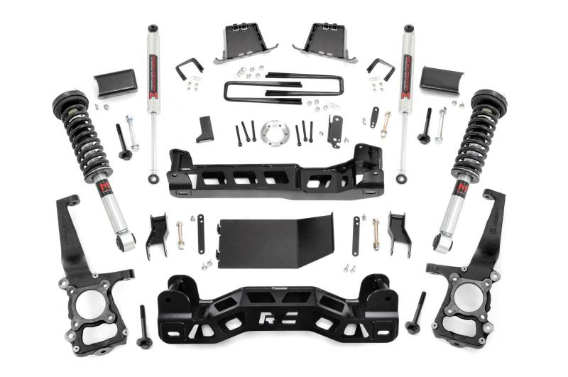 Commanding Lift, Premium Ride: Transform the look and capability of your 2009-2010 Ford F-150 with Rough Country's 6-Inch Lift Kit. Engineered to deliver a bold, leveled stance, this kit not only increases ground clearance for rugged off-road performance but also makes room for larger tires and wheels. Whether you're cruising the highway or tackling backcountry trails, enjoy a smooth, confident ride with enhanced control and presence. Engineered for Strength and Stability: Built for serious performance, this kit features heavy-duty lifted knuckles, durable strut spacers, or your choice of lifted struts, all designed to maintain proper suspension geometry. Differential and sway-bar drop brackets, along with brake line extensions and a driveshaft spacer, ensure everything stays at factory-like angles. Massive 1/4-inch thick front and rear crossmembers offer uncompromised strength, laser-cut with the RC logo for a clean, aggressive look.Advanced Rear Block Design: Rough Country's 4.5-inch fabricated rear blocks are stronger and longer-lasting than traditional cast versions. Specially engineered anti-axle wrap blocks eliminate common lift-related issues while maintaining stock ride comfort. You get durability and drivability in one rugged package.Tailored Ride Performance: This kit includes Rough Country's premium N3 shocks-10-stage variable valving, nitrogen-charged for the perfect fusion of off-road performance and on-road comfort. Want more? It's fully configurable with Rough Country's full lineup of shocks and struts, including the high-performance Vertex reservoir upgrade.Limited Lifetime Replacement Warranty. Rough Country's 6" Lift Kit is backed with a limited lifetime replacement warranty for manufacturer defects. As such, the product is protected from structural and workmanship damage after the date of purchase. With our industry-leading warranty, give yourself peace of mind when using Rough Country's Suspension products!