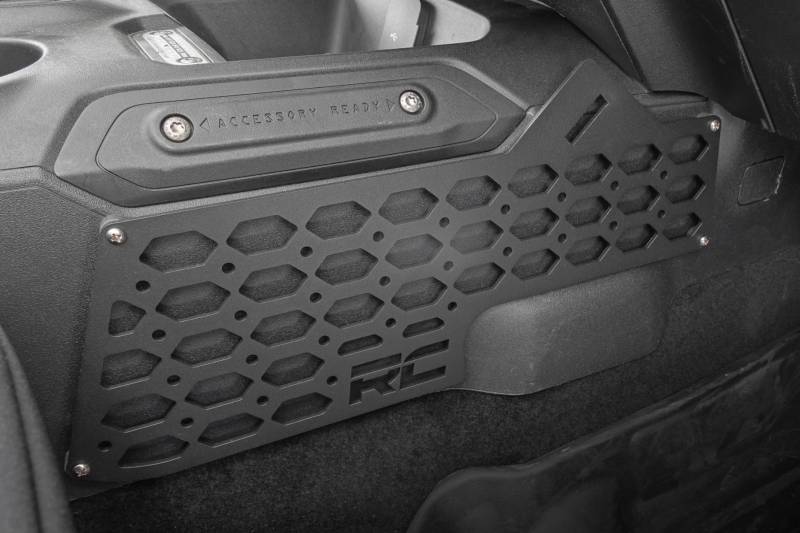Stay Organized. You shouldn't be penalized for being prepared to tackle the road less traveled. Efficiency is key when preparing for your next big adventure and we are pulling out all of the stops to ensure that your vehicle works for you. At Rough Country, we keep the adventurist in mind and have created a modern solution. Introducing Rough Country's Molle Panel System for Ford Bronco! Durable Components. Whether your rig is a workhorse or an off-road overlander, this kit can be customized to get the job done. This modern solution easily secures to the side of your Bronco's center console allowing you to keep your necessities close. Rough Country's Molle Rack system is constructed of heavy-duty 1/8" thick steel and is coated with a durable powder coat finish! Installation and Warranty. Best of all, Rough Country's Molle kit is a ready-to-install system with excellent fitment for your Ford Bronco right out of the box. Rough Country's Molle Panel Kit is easy to install and includes all the necessary hardware, making it a great option for those who want to do the job themselves. With an estimated installation time of 30 minutes, this kit is a bolt-on installation that can be completed at home. You also get peace of mind knowing that your purchase comes with a limited lifetime replacement warranty for manufacturer defects. With Rough Country's industry-leading warranty, you can be sure that your Rough Country molle panel kit is protected from structural and workmanship damage after the date of purchase.