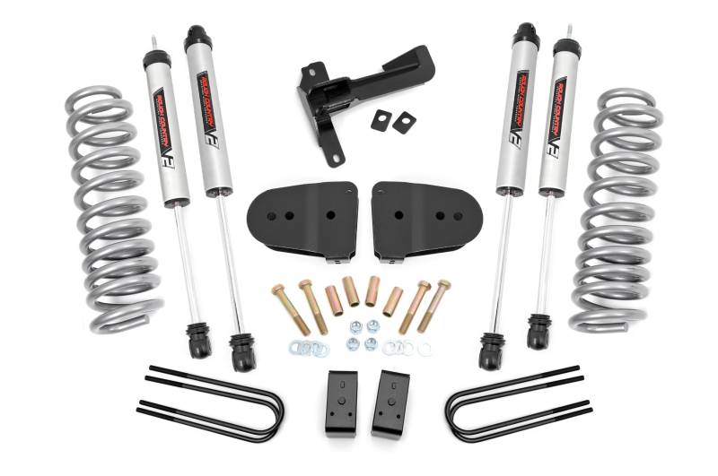 Bold Stance. Bolt-On Simplicity: Give your 5th gen Ford Super Duty a commanding upgrade with Rough Country's 3" Suspension Lift Kit. This all-in-one solution levels the front with the rear for a clean, aggressive stance while improving ride height and off-road capability. Best of all, installation is simple with a 100% bolt-on design, no cutting or grinding required.Ride High Without Compromise: This kit includes premium lifted coil springs designed to increase ground clearance without sacrificing comfort or handling. The springs are precision-engineered to maintain factory ride quality while providing the lift you need for tougher terrain and larger tires.Dialed-In Geometry and Handling: Included radius arm drop brackets and a track bar drop bracket ensure proper caster and suspension geometry, helping your Super Duty retain factory-like handling and driveability, even with the extra height.Premium Shock Options: This kit comes equipped with Rough Country's N3 shocks, 10-stage variable valving, nitrogen-charged performance, and a rugged 18mm chrome-hardened piston rod for durability and control. Want more? Upgrade to M1 monotube or V2 reservoir shocks to match your performance expectations.Ready for 35s: With increased clearance and included components, this kit gives you the freedom to run up to 35" tires with the proper wheel backspacing, so you can customize your Super Duty with the aggressive look and capability it deserves.Backed for the Long Haul: Like all Rough Country suspension products, this 3" Lift Kit is backed by our Limited Lifetime Replacement Warranty for total peace of mind.