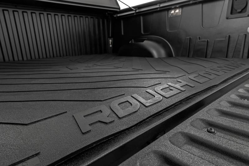 Innovative Design and Material. Keep your truck bed free from scuffs, scrapes, and scratches with Rough Country Truck Bed Mats. These heavy-duty, 3/8-inch thick, contoured rubber mats are nearly indestructible; made from a high-quality rubber compound that won't crack in extreme temperatures or fade when exposed to the sun. This stylized bed mat features a large "RC" and "Rough Country" logo with angled lines for an improved look that also protects your truck bed. Installation. With a simple drop-in design, installation couldn't be easier. With an estimated timeframe of 10 minutes, this mat can be installed at home efficiently and quickly! Simply place the bed mat in, and roll it out and you're done! Limited Lifetime Replacement Warranty. Rough Country's bed mats are backed with a limited lifetime replacement warranty towards manufacturer defects. As such, the product is protected from structural and workmanship damage after the date of purchase. With our industry-leading warranty give yourself peace of mind when using Rough Country products!
