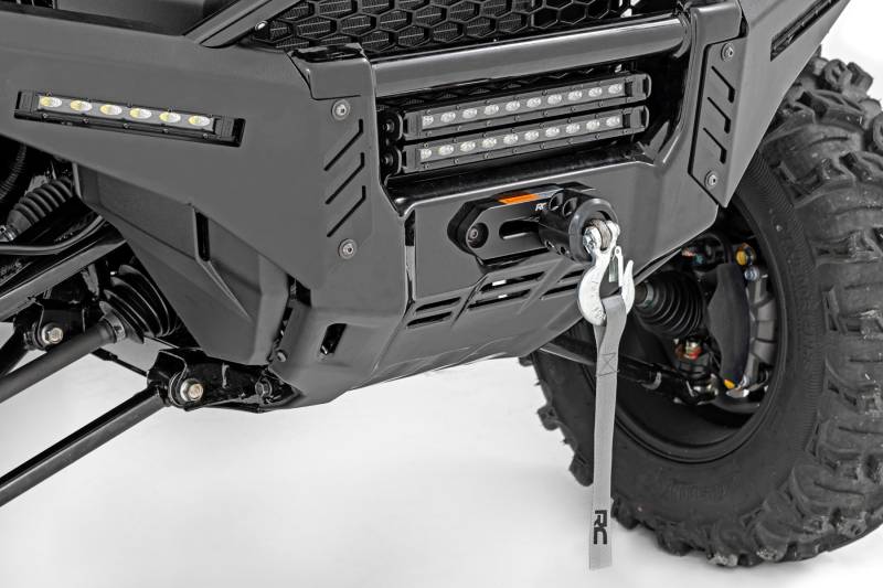 Superior Functionality: Take on any trail with confidence using Rough Country's Honda Pioneer Winch Mounting Plate. This essential upgrade equips your UTV with reliable recovery power, helping you overcome off-road challenges and unexpected terrain with ease. Designed for a seamless fit, the winch stays hidden behind the factory bumper for a clean, low-profile look that doesn't compromise functionality.Heavy-Duty Construction: Built from durable 1/4" steel, this rugged winch plate is engineered to handle serious recovery jobs. Dual mounting bolt patterns support most 3,500lb to 5,000lb winches, giving you the flexibility to match your setup to your needs. Each plate is finished in a corrosion-resistant black powder coat for long-lasting durability and a factory-like appearance.Simple, Bolt-On Installation: No cutting, no drilling, no hassle this 100% bolt-on kit installs easily with basic tools and includes all required hardware and detailed instructions. The fairlead mounts directly in the stock location for a perfect fit. Choose to pair it with Rough Country's 4500lb or 6500lb synthetic rope winch for maximum recovery performance.Peace of Mind Warranty: Like all Rough Country products, this winch mounting plate is backed by a limited lifetime replacement warranty against manufacturer defects. That means you're protected from structural or workmanship issues for the life of your vehicle ownership. Trust Rough Country for quality you can count on, on and off the trail.