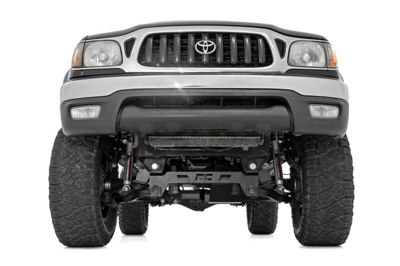 Legendary Truck, Bold Upgrade: The 1st Generation Toyota Tacoma has earned its legendary status, seen conquering everything from rugged trails to urban streets. Now, you can elevate your Tacoma's capability and style with Rough Country's 6-Inch Suspension Lift Kit, built to transform your truck into an off-road beast with bold, aggressive looks.All-Inclusive Performance Package: This complete lift system delivers everything you need to clear larger tires and gain serious ground clearance. It includes heavy-duty front and rear crossmembers, a reinforced skid plate, and all necessary brackets and extensions to preserve power steering function and maintain correct suspension geometry after lifting.Ride Ready, Trail Proven: Rough Country's application-valved N3 shock absorbers are tuned specifically for your Tacoma, providing the perfect balance between on-road comfort and off-road performance. For even greater convenience, the kit is available with N3 Loaded Struts, pre-assembled to enhance handling and simplify installation.Hassle-Free Installation, Built to Last: No strut disassembly or strut compressor is required, making this one of the easiest 6-inch kits to install. Durable fabricated lift blocks outperform cast alternatives, ensuring long-term strength and reliability for wherever the road or trail takes you.Confidence Backed by Coverage: Give your first-gen Tacoma a bold new look and proven performance with Rough Country's 6-Inch Suspension Lift, backed by a Limited Lifetime Replacement Guarantee.