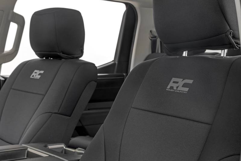 Want to protect your seats or are your seats showing signs of wear and tear from daily use? Say goodbye to unsightly stains and deterioration with Rough Country's Neoprene Seat Covers - the ultimate solution for preserving your vehicle's interior.Snug Fit for Optimal Protection: Our seat covers are tailored to fit your seats perfectly, providing a protective barrier against spills, scratches, and everyday wear and tear.Factory-Spec Construction: Engineered to meet factory specifications, our covers blend seamlessly with your vehicle's interior, giving it a fresh, new look without compromising on quality or style.Four-Layer Defense: With a four-layer construction featuring foam padding and a durable polyester shell, our seat covers offer unmatched protection and longevity, ensuring your seats stay looking new for years to come.Breathable and Water-Resistant: The neoprene layer not only provides breathability for added comfort but also boasts water-resistant properties, safeguarding your seats from spills and stains.Complete Coverage: Our covers come with full protection for your front seats, including headrest covers where applicable, as well as rear covers to shield your back seats from children and pet-related mishaps.Peace of Mind Warranty: Rest easy knowing your purchase is backed by our two-year warranty, giving you confidence in the durability and reliability of our product.Don't let worn-out seats diminish your driving experience. Upgrade to Neoprene Seat Covers today and enjoy a fresh, stylish interior that's protected against the rigors of daily life on the road.