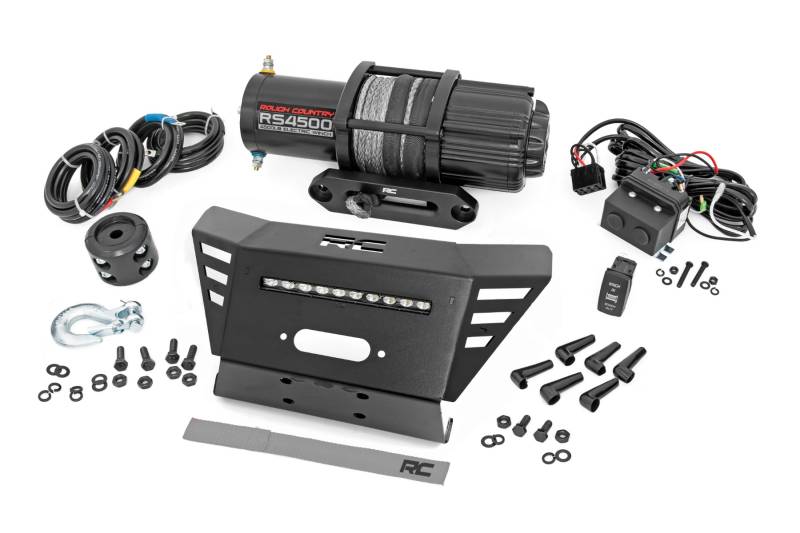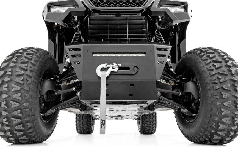 Upgrade Your Honda Pioneer 520: Take your off-road adventures to the next level with Rough Country's Winch Mount. This rugged mount replaces your stock front bumper, providing a secure platform for off-road recovery gear. It also includes a 10" Slim Line LED light producing 4000 lumens to illuminate even the darkest trails. The mount is designed to accommodate a 4500lb winch, which can be purchased separately or together with the kit, giving you the flexibility to create a complete recovery-ready setup. Say goodbye to weak stock bumpers and hello to the strength and durability of Rough Country.Built for Durability: Constructed from heavy-duty 7-gauge steel and finished in a glossy black powder coat, this winch mount resists rust, corrosion, and wear from harsh off-road conditions. Its low-profile design not only looks sharp but also ensures a secure fit for your Honda Pioneer 520.Easy Bolt-On Installation: No cutting or drilling is required, simply bolt the mount into factory mounting points for a fast and hassle-free upgrade. Whether you're adding the LED light, a winch, or both, this mount gives you a complete, customizable setup without the headache of complicated installation.Trail-Ready Performance: With Rough Country's Winch Mount, your Pioneer is ready for any challenge. Combine superior strength, corrosion resistance, and optional winch capabilities to make every off-road journey safer, brighter, and more capable.